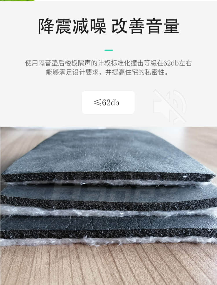 具有隔音好,防水防潮,無(wú)毒環(huán)保,隔熱保溫,回彈力好,重量輕,使用壽命長(zhǎng)等特點(diǎn),是解決住宅噪音問(wèn)題的專業(yè)隔音產(chǎn)品,是一種新型節(jié)能環(huán)保材料。